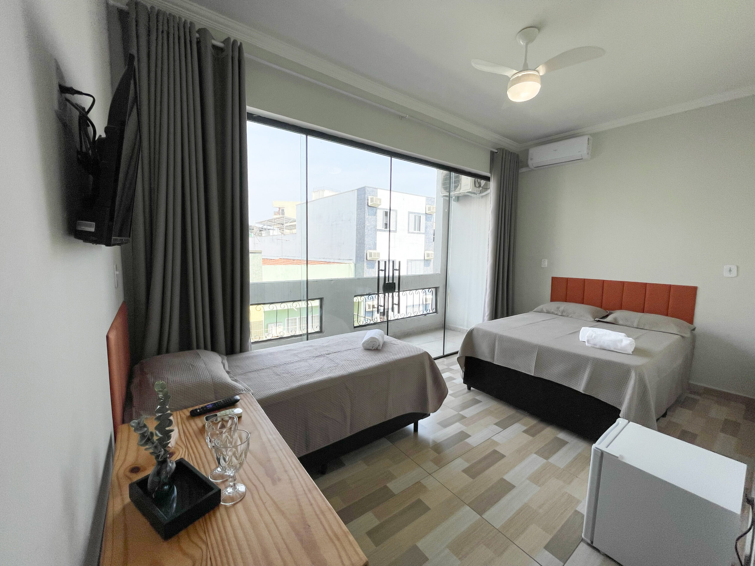 Oferecemos quartos duplos, triplos e quartos família, ideais para casais, famílias e peregrinos que visitam Aparecida. Todos os hóspedes contam